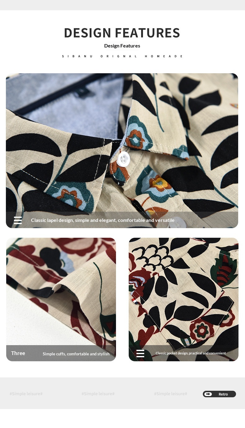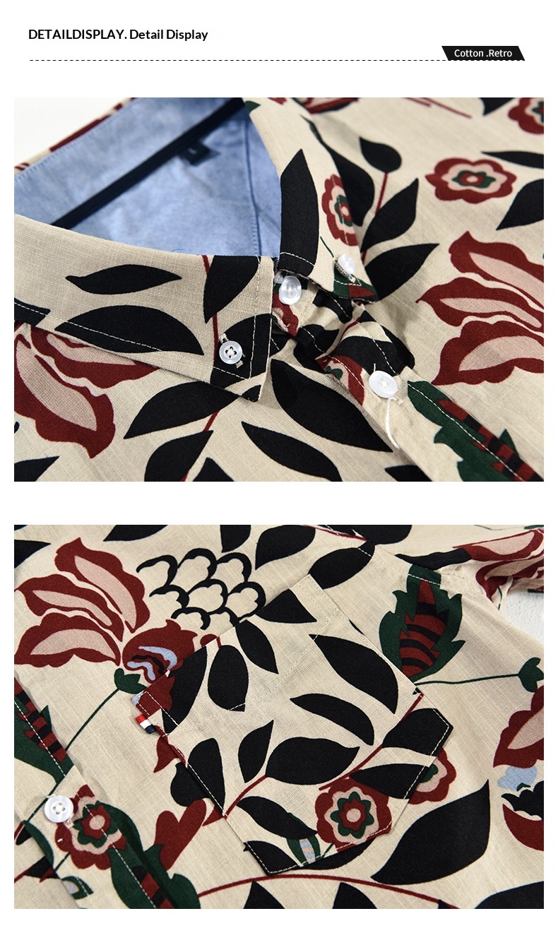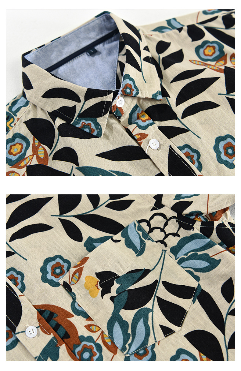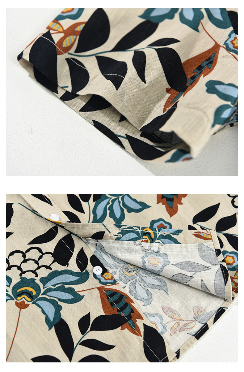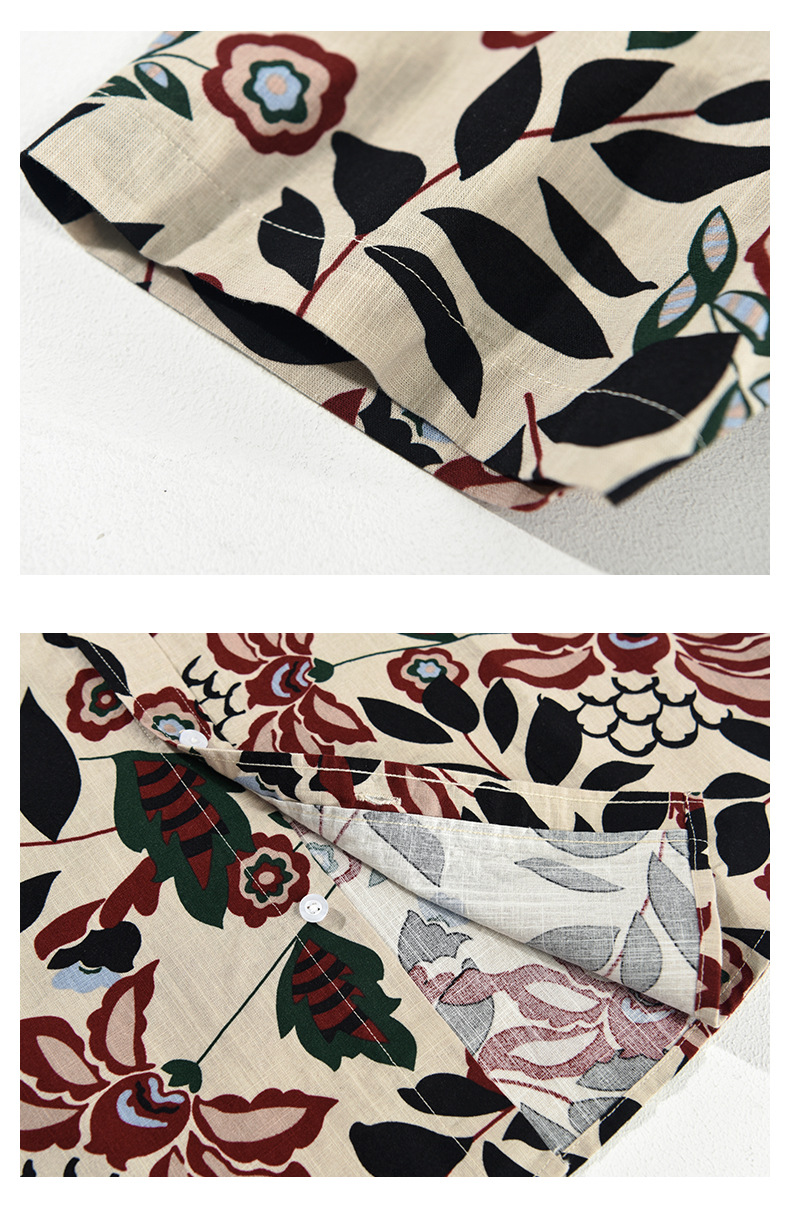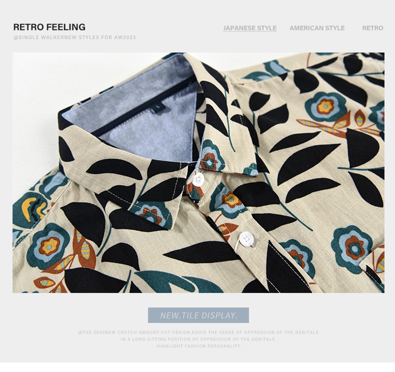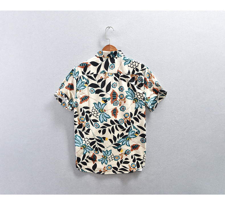 Mens Japanese-style Printed Casual Short-Sleeve Shirt