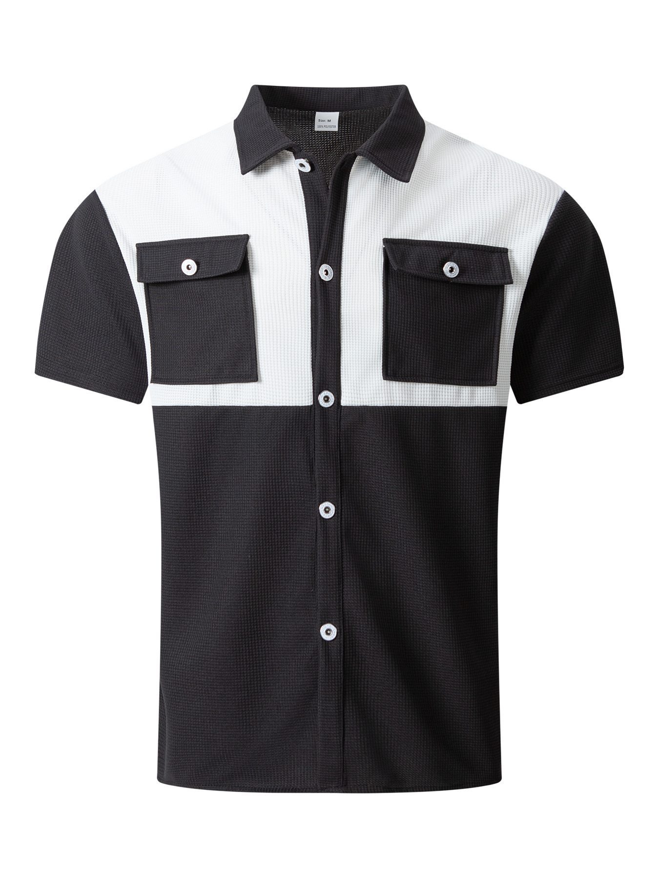 Mens Waffle-Weave Lapel Casual Short-Sleeve Shirt